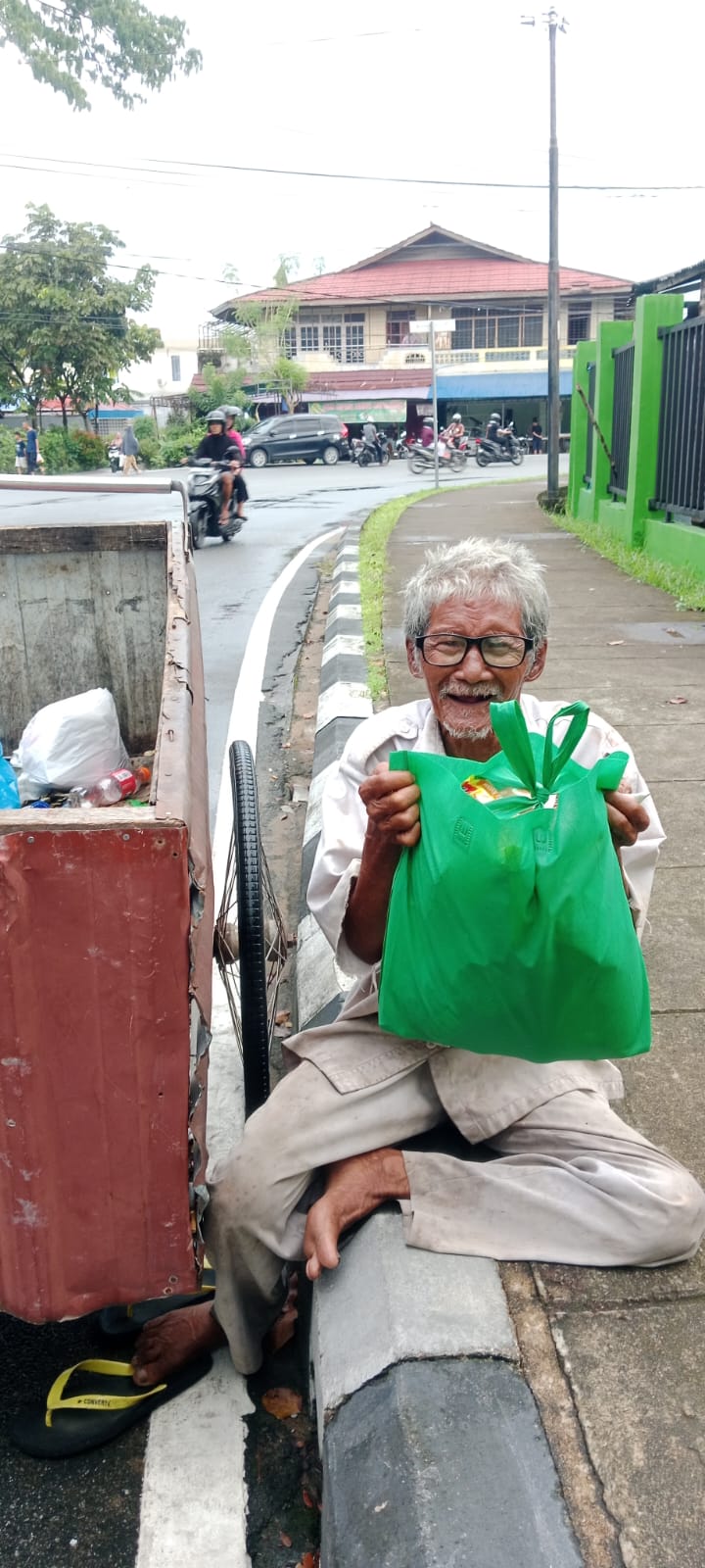 Diserahkan secara simbolis oleh Kepala KUA dan ada juga yang kami bagikan dengan menyapa mereka yang sedang bekerja di jalan seperti pemungut sampah dan Dhuafa yang berhalangan hadir. Sekalipun hujan mengguyur lebat menyambut kedatangan mereka , namun tampak keceriaan dan harapan di wajah mereka.
