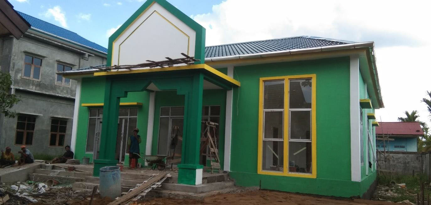 Terpantau di hari ke seratus delapan pengerjaan ini, progress pembangunan dalam tahap finishing dengan struktur bangunan 1 lantai, saat ini masih menyelesaikan pembuatan saluran drainase samping bangunan dan pengecoran jalan masuk gedung KUA. (Ahadian)
