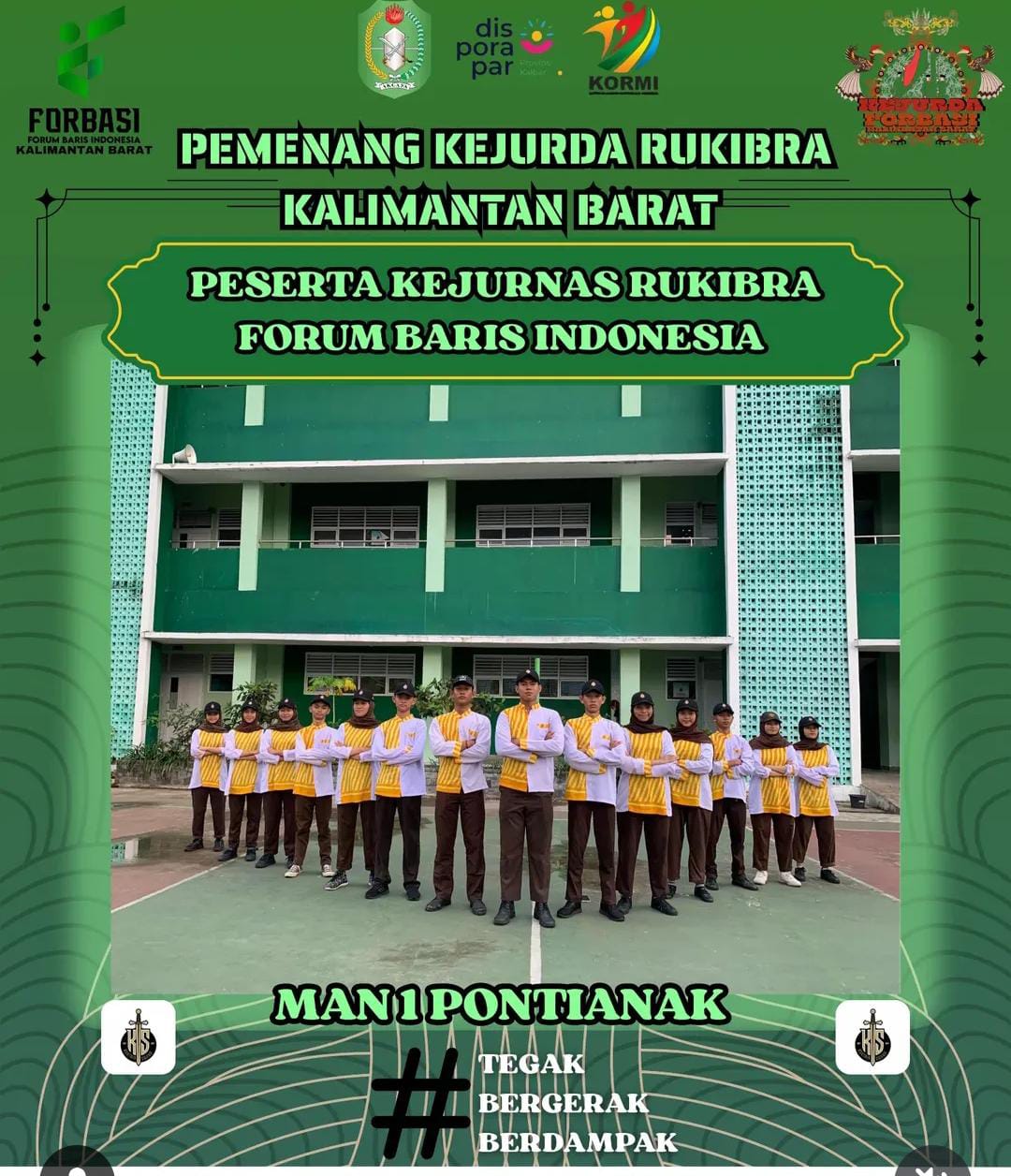 Pasukan Pengibar Bendera (PASKIBRA) MAN 1 Pontianak seakan tiada henti menorehkan prestasi terbaiknya untuk madrasahnya. Kali ini, melalui kegiatan lomba RUKIBRA atau Regu Pengibar Bendera, tim Paskibra MAN 1 Pontianak dinyatakan berhak melaju ke Tingkat nasional untuk mengikuti Kejuraan Nasional Rukibra. Penetapan ini berdasarkan Surat Keputusan yang dikeluarkan oleh Pengurus Daerah Forum Baris Indonesia Provinsi Kalimantan Barat dengan nomor SK. 003/PD-FORBASI/VIII/2025 tertanggal 21 Agustus 2025.