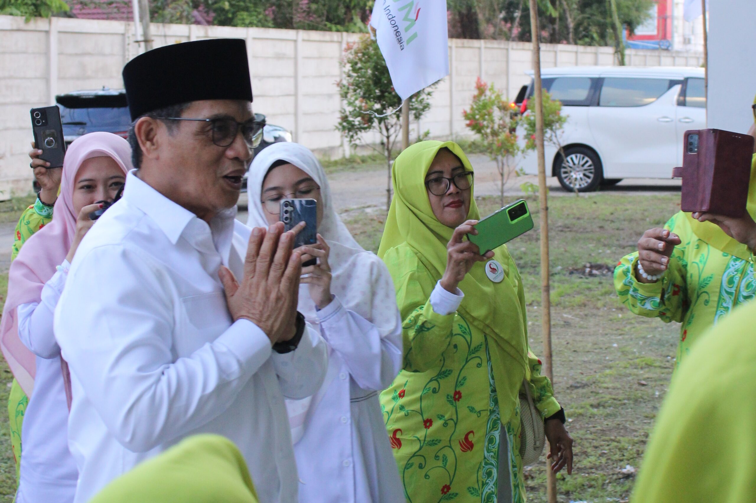 Kepala Kantor Kementerian Agama Kota Pontianak turut menyambut kedatangan Wamenag bersama Kepala Kanwil Kemenag Kalbar beserta jajaran, Deputi Usaha Mikro Kementerian UMKM, Plt. Ketua Umum Pengurus Pusat FAHMI UMMI Maya Siregar, Sekjen, Bendahara Umum, serta para pengurus wilayah dan daerah yang akan dilantik. Sesaat tiba di lokasi, Wamenag disambut dengan lantunan kasidah oleh pengurus FAHMI UMMI.