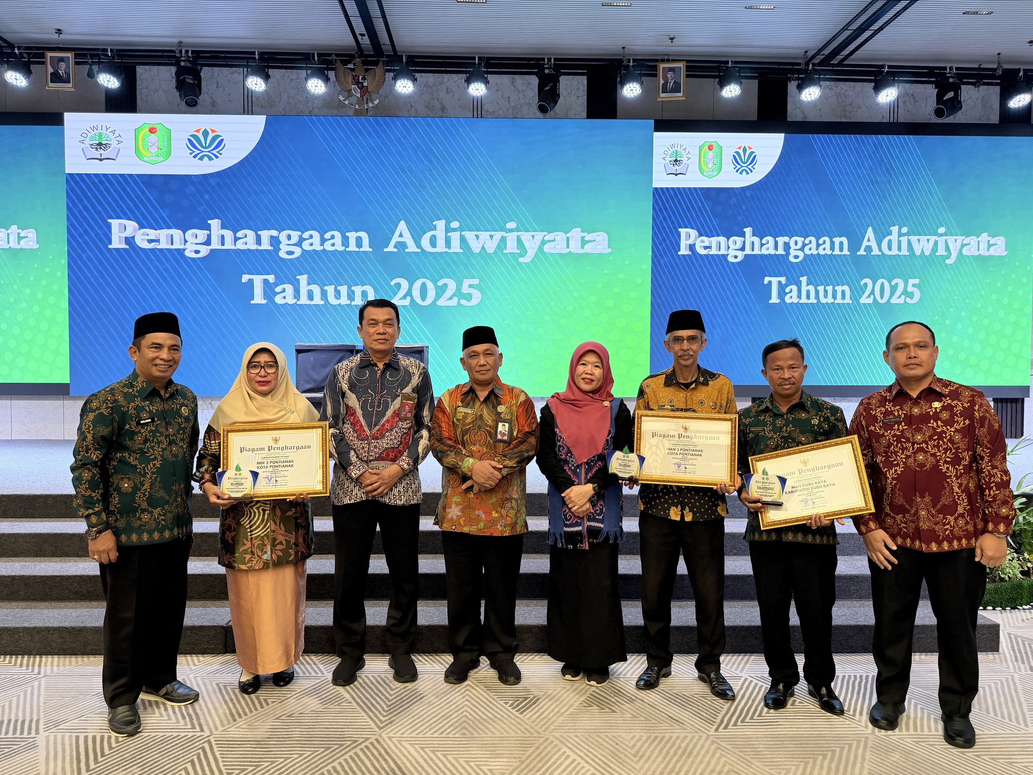 MIN 2 Kota Pontianak dan MAN 3 Kota Pontianak berhasil meraih Penghargaan Sekolah Adiwiyata Provinsi Kalimantan Barat Tahun 2025 pada kegiatan Puncak Penghargaan Adiwiyata Provinsi Kalbar Tahun 2025 yang diselenggarakan oleh Dinas LHK Kalbar di Hotel Golden Tulip pada Kamis (18/12/2025).